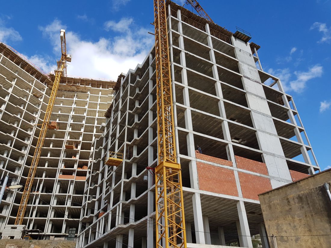 Housing development with 250 apartments spread over 6 blocks with 14 floors, 4 of which are underground for parking.